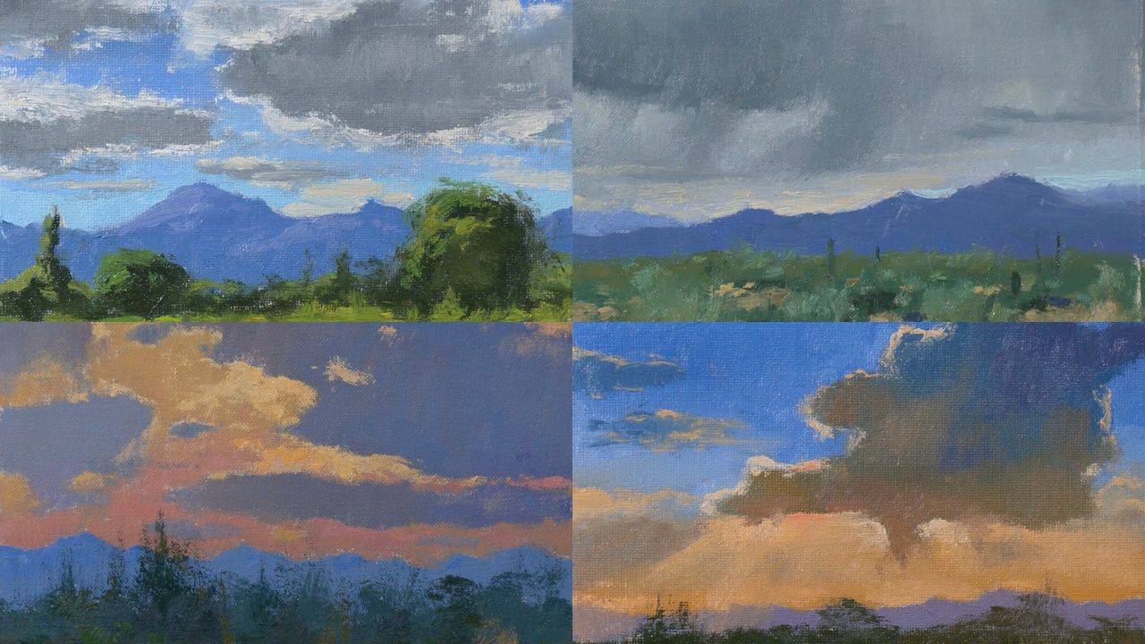 You’re about to enjoy a four-video oil painting package devoted to the beauty, mood, and challenge of dramatic skies. From gathering storm clouds to the softer glow of sunset light, each video offers a thoughtful and enjoyable way to better understand atmosphere, structure, value relationships, and the changing character of the sky.